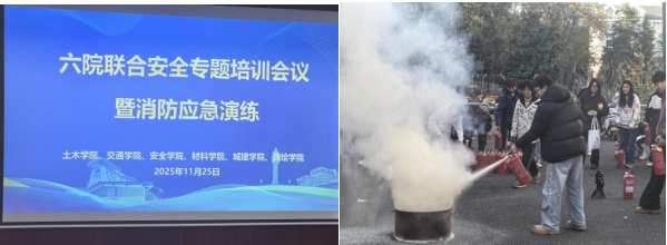 11月25日,由城市建设学院、土木工程学院、材料学院、安全学院、交通学院、测绘学院等六院共同举办的安全专题培训会暨消防应急演练活动在江浦校区成功举行。实验室建设与管理处李强科长、保卫处刘世伟科长、六院党委书记以及师生代表200余人参加培训和应急演练。会议由土木学院张涛书记主持。