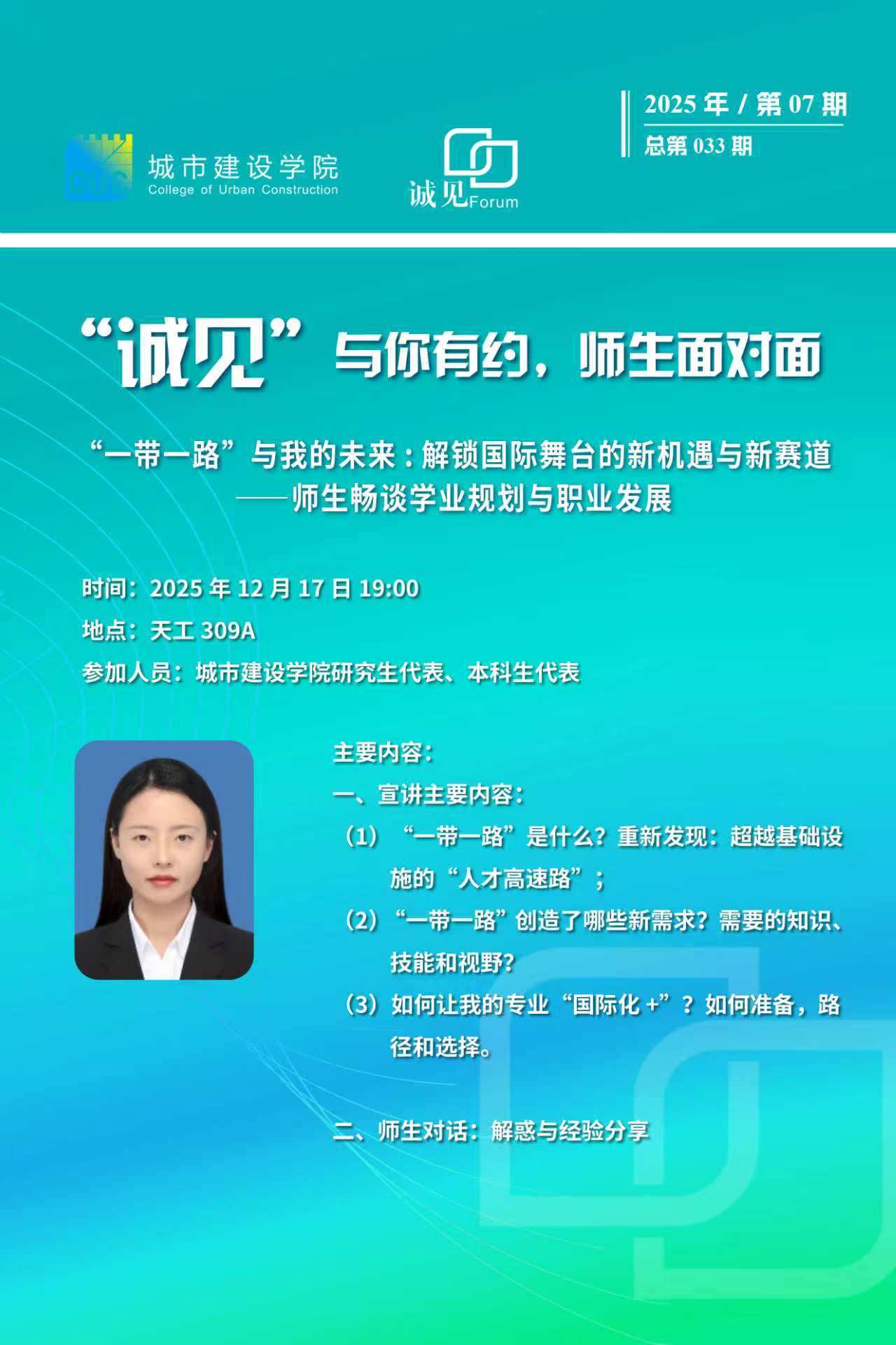 (总第033期) “诚见”明德讲堂-与你有约,师生面对面(第007期)- “一带一路”与我的未来解锁国际舞台的新机遇与新赛道